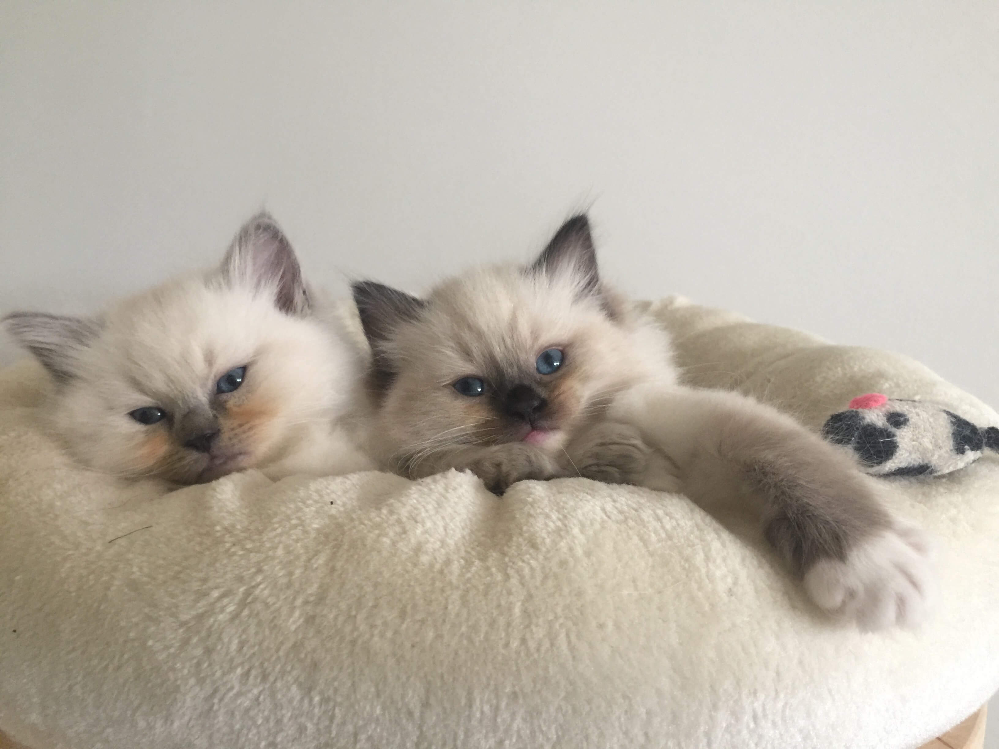 Nos chatons quittent la chatterie en ayant été vermifugés et avec la première série de vaccins contre le Tiffus, le Coryza et la Leucose. Ils auront reçu un carnet de vaccination lors de leurs consultations chez le vétérinaire. Les chatons partent non-pucés (possibilité d'être pucé, uniquement sur demande, avec supplément de prix).